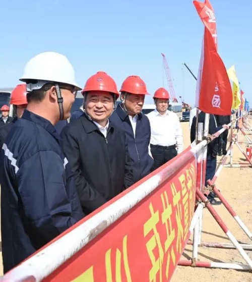 10月6日,遼寧省委書記、省人大常委會主任郝鵬在中國兵器工業(yè)集團(tuán)有限公司總經(jīng)理、黨組副書記劉大山的陪同下到北方華錦聯(lián)合石化有限公司調(diào)研。郝鵬一行深入精細(xì)化工及原料工程項目施工現(xiàn)場,向在場的施工建設(shè)者們致以親切慰問,實(shí)地察看了原油罐樁基區(qū)施工現(xiàn)場、地管作業(yè)區(qū),在主干地管施工三標(biāo)段項目部,聽取項目安全標(biāo)準(zhǔn)化、質(zhì)量標(biāo)準(zhǔn)化、施工標(biāo)準(zhǔn)化建設(shè)情況匯報。遼寧省委常委、省政府副省長王健,遼寧省委常委、秘書長姜有為,集團(tuán)公司黨組成員、副總經(jīng)理閆哲參加調(diào)研。